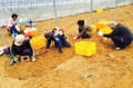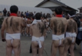 浜に響き渡る勝どきと蒙古太鼓 小茂田浜神社大祭
