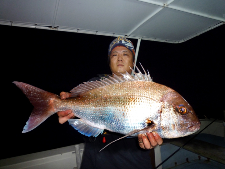 船長はご自身が釣師でもあるので厳原周辺のポイントは知り尽くしており、8月から9月にかけては磯釣りで良型の石鯛やイシガキ鯛、船釣りで良型の真鯛の釣果が出ており、特に船釣りは短時間での夜釣りでも好釣果を上げているとのことでした。