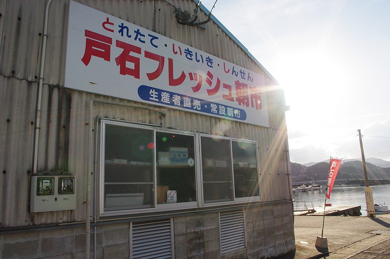 漁港の一角には「戸石フレッシュ朝市」もありました。11月26日~3月末までの毎週土・日曜、祝日にはここで「カキ焼き」も楽しめるんですよ(写真は昨年の様子です)。