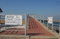 私が行った時、実は風が強く釣りには不向きな天候でした。もちろん、入口の門は閉ざされたまま……。こんなに晴れているのに……。奥に見える横一直線の堤防が釣り場施設で、当然人っ子1人いませんでした。なんだかやるせない思いを胸に、管理人さんに話を伺ってみたところ、アジが釣れるとのことで、釣り場施設には水道もあるそう。
