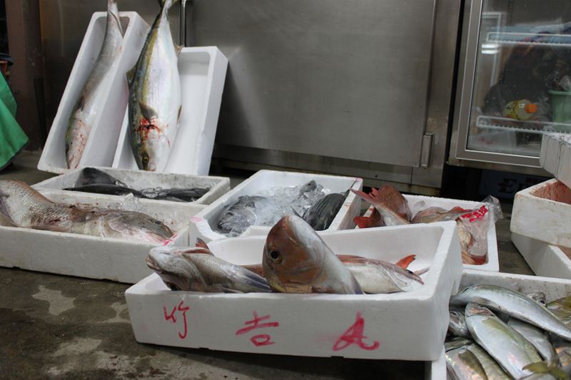 この日は、ブリ、カンパチ、サバ、サバ、アジ、イカ、鯛、サワラ、きびなごなどがありました。 五島ならではの美味しい食べ方は?と質問したところ、「鮮度がいいから、やっぱり刺身が1番」と答えが返ってきました。
