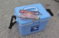 看板には“貸し釣竿”の文字がありました。早速、お店へ向かい道具をレンタルすることに。子どもでも使えるサイズの簡単な釣竿とエサ(小さなエビ)、クーラーボックスの一式を800円でレンタルすることができましたよ。お店のおばさんによると「この道具で釣れるのはベラかあらかぶかなぁ」。防波堤の上ではクロなども釣れるようですが、それには撒き餌などが必要ということで断念。