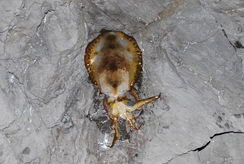 そして唐突に「掛かったよ~」と言われあわててカメラをセット。釣り上げたのは400グラム程のミズイカ。