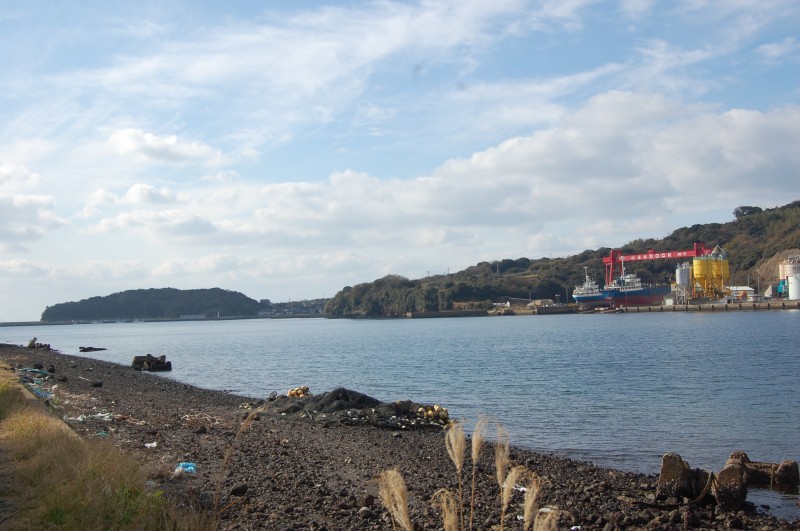 月に2回の大潮の前後、数時間しか潮が引かないので、天候とのタイミングが合わないと難しいそうです。この日は旧12月12日。宇土湾は、初心者でも簡単に行けるスポットです。整備されるまでの宇土湾は、魚の宝庫と言われて、10日・20日のタコ漁では、100匹以上も獲れていたそうです。ちょうど、小さな漁船が岸壁近くで何か獲っていました。