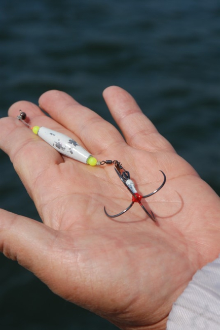 おじさまのお友だちが作ってくれた、なまこ釣りの疑似餌。海底に疑似餌を落とし、引きずるように動かしながら釣っていく。残念ながら今年はナマコはなかなか釣れなかったそうです。
