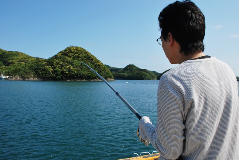 息子と二人、向かったのは豊玉町の仁位浜。まず最初は投げ釣りビギナーの息子のために遠くまで仕掛けを投げて竿を渡しました。