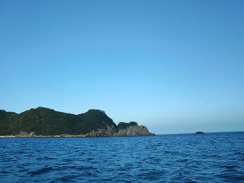 私たちは、船長のすすめもあって、福江港沖のサザエ島にある「手代のハナレ」に上礁した。