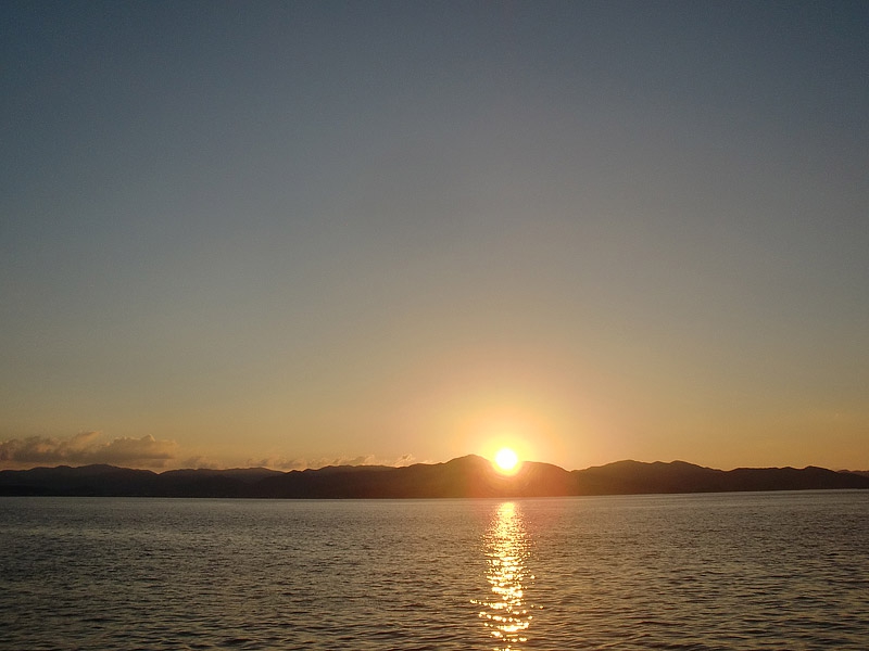 五島列島福江島に沈む夕陽。夕陽が沈むといよいよ夜釣り本番となる。