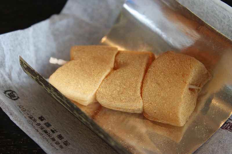 今回のグルメは、五島の定番お土産お菓子についてご紹介します。「五島民俗銘菓 八匹雷」五島人では知らない人はいないと言っても過言ではなく、お土産といったら、コレ!という定番でもあります。天皇皇后両陛下が来島された際に献上されたお菓子です。「八匹雷」と書いて、「ハッチカンカン」と読みます。