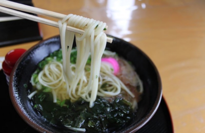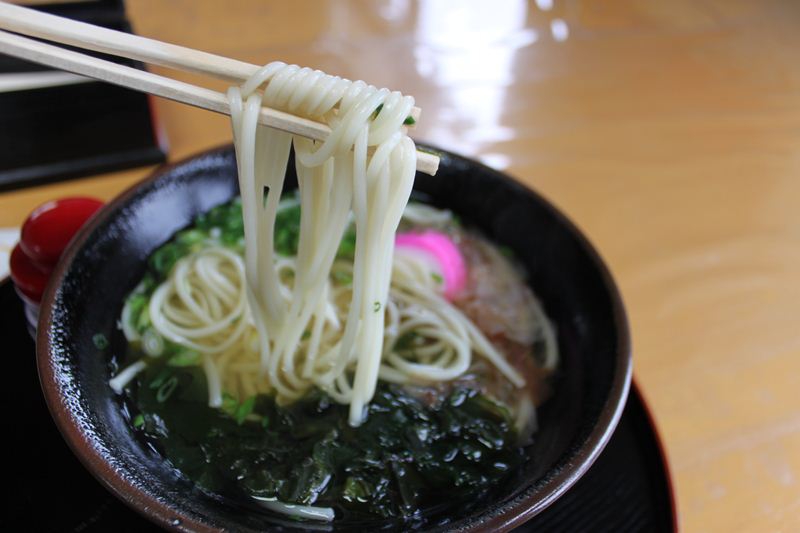 今回の愛しの島グルメは、うどん好きの中でも人気の高い「五島うどん」を御紹介します。初めて五島うどんを見た人は、「素麺?」と間違えるほど、他のうどんと比べ、麺が細くなっています。「手延べ」で作られている麺は、コシが強く、切れにくいのが特徴です。天日干しされた麺は、ミネラル豊富な潮風の恵みをたっぷり受けて、乾麺になり、生では味わえない小麦の味わいがより引き出されています。