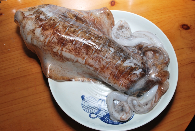 まず、その大きさに驚きました。イカを直径30cmの皿にのせてみると大きくはみ出しています。