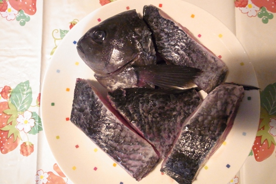 とても寒い日だったので鍋にすることに。鍋にするならあの魚も欲しい。五島の冬の美味、メジナ。五島では「クロ」とか「クロヨウ」と呼ばれる魚です。厳寒期の五島のメジナは脂がのっておいしいんです。刺身もおいしいですが、私のおすすめは鍋。ほふほふ言いながら皮ごと食べると最高なんです。皮と身の間にうま味がつまっていますからね。メジナはスーパーで買ってきて、具だくさんの鍋をつくりました。鍋は部屋も暖めてくれるので好きです。家族みんなでたらふく食べさせてもらいました。
