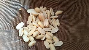 本来は松の実を使うんですが、五島では売ってないのでピーナッツで代用。軽くローストしておきます。次にニンニクを摩り下ろします。こちらもオリーブオイルを加えてフライパンで軽く炒めておきます。全部を混ぜて、塩胡椒とレモン汁を足して、ゴリゴリします。はい、できあがりました。このバジルペーストは家内が経営している「ダイニングバル・えみ庄」でパスタやカプレーゼ、マリネなどに使っています。