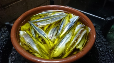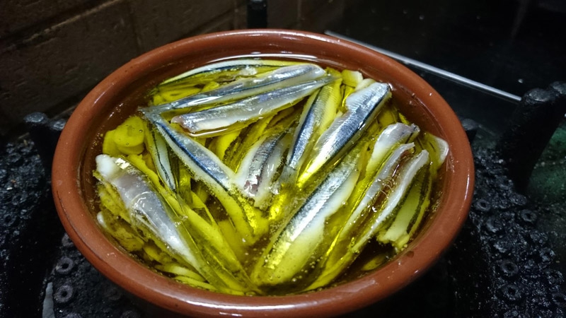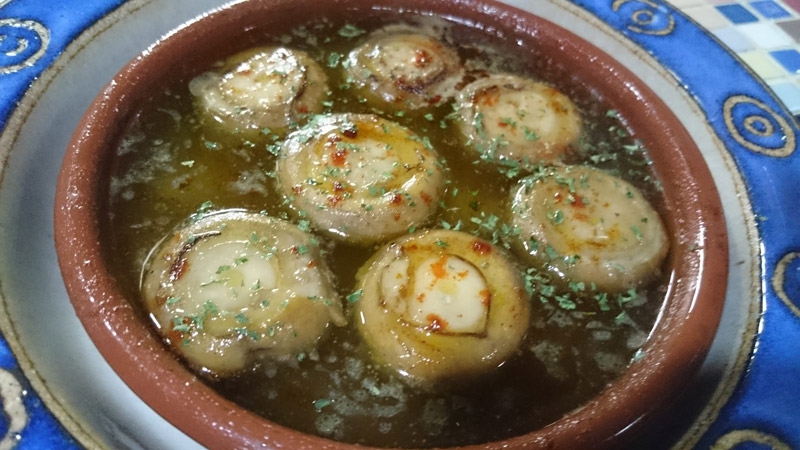 五島で唯一のバル「えみ庄」での冬の人気メニューの一番は「アヒージョ」です。アヒージョ(ajillo)はスペイン語でニンニク風味の意味だそうですが、オリーブオイルに「小さな村」の農園で育てている鷹の爪と、ニンニクをたっぷりと入れて、アンチョビペーストをちょこっと加えて、グツグツとアチアチになるまで煮立てたら、魚介類から野菜まで、自分が好きなものを入れれば、ハイ!出来上がり。