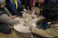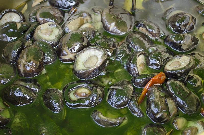 そして忘れてはならないのが、旨い酒につきものの美味しいつまみ。色々探しているとありました。ハーブや鷹の爪を入れたオリーブオイルで対馬産のどんこしいたけを煮たアヒージョオイル煮。肉厚のどんこしいたけはプリプリした歯ごたえで、イタリアンな味付けとマッチしてとっても美味しかったです。酒蔵のあちこちではさっそく購入したお酒やおつまみで酒宴が始まっており今年の蔵開きも大盛況でした。