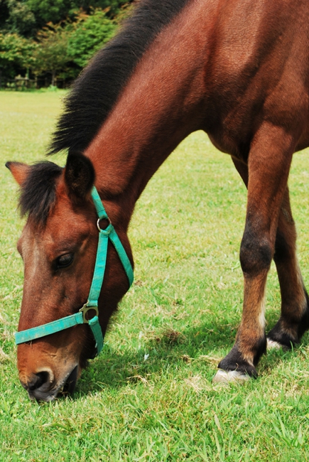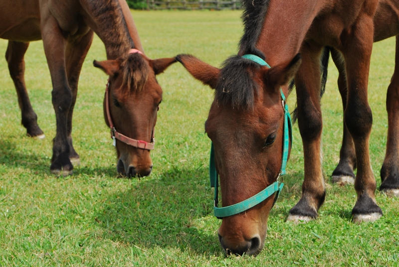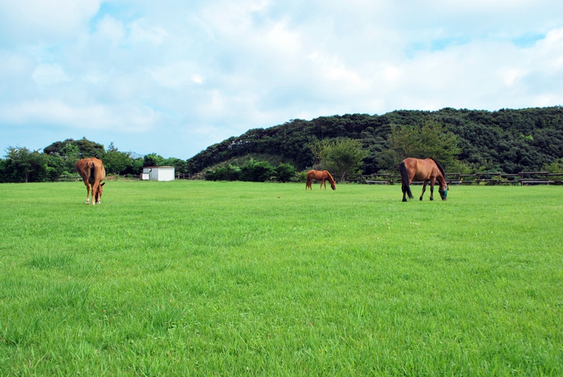 対州馬は対馬在来種の小型の馬で、体高(肩までの高さ)は125cm程度です。サラブレッドは170cm程ありますので、いかに小さいかわかりますね。