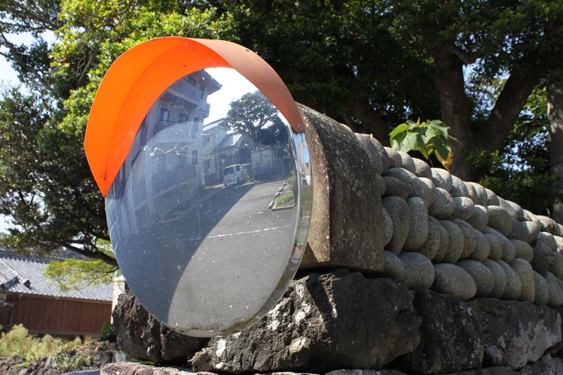 このポストも久しぶり!武家屋敷の雰囲気にピッタリですね。カーブミラーもこのように石垣の塀に直接くっついて、武家屋敷ならではではないでしょうか。石垣の塀や薬医門を見ながら歩いていると、軽くタイムスリップしたような不思議な感覚が味わえます。武家屋敷通りを約10分ほど歩いて行くと、左の方に「福江武家屋敷通り ふるさと館」見えてきます。