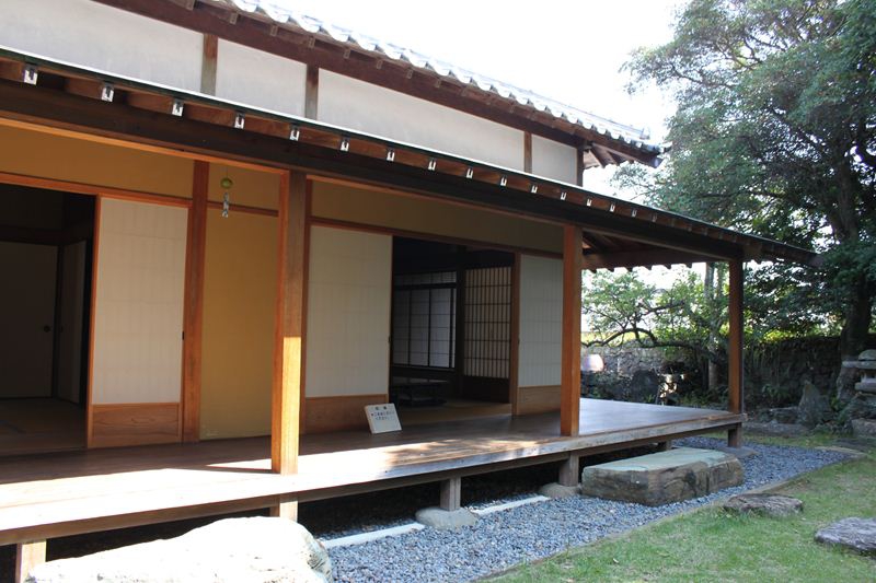 ふるさと館の中へ入り、散策してみました。ふるさと館は、五島家家臣の1人藤原氏の屋敷跡で、居宅自体は明治末期に建て替えられています。良い匂いがすると思い見上げると、金木犀の花が咲いていました。金木犀の木の右奥には、休憩スペースがありました。庭園は、林泉式庭園であり、庭園文化的価値が高いそうです。もみじの木がありこれからの季節、ますます見応えがあるんじゃないでしょうか?その他、カキの木などがありました。縁側に座って、日向ぼっこをしていると、風鈴の音がチリンチリンと聴こえ秋の風を感じました。