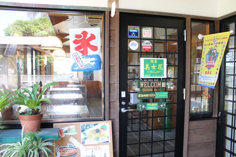 奥にある展示コーナーでは、昭和30年代から昭和40年代の武家屋敷通り界隈の写真を展示しています。少し一休みしたい時は、ここ「喫茶 美女花(みじょか)」私のおススメは、五島の郷土菓子カンコロ餅と抹茶のセットです。カンコロ餅とは、サツマイモを薄く輪切りにして天日に干し、餅と混ぜ合わせ成形した五島の代表的な郷土菓子です。カンコロ餅のサツマイモの甘い味と、焼いて香ばしい食感がたまりません。