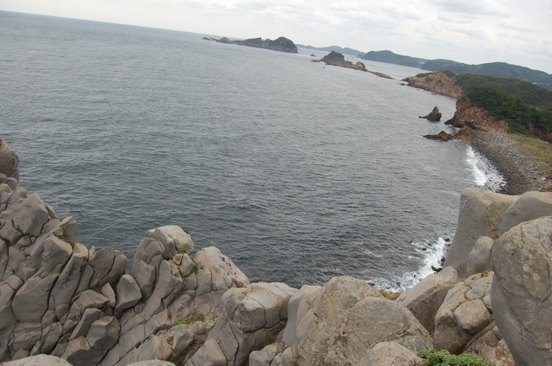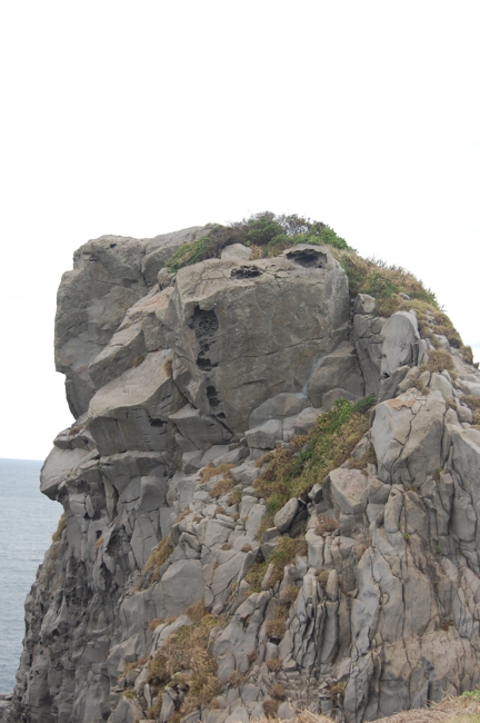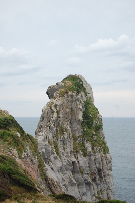 島の細道第2弾は、壱岐の代表的な観光地猿岩周辺をご紹介します。壱岐の西の端、黒崎半島の先端にある通称「猿岩」は、そっぽを向いた猿の姿の奇岩です。その高さは45m。海蝕崖の玄武岩でできていて、壱岐にある八本の柱の一つ「折柱」といわれています。今では壱岐の有名な観光地ですが、以前は壱岐の人も知らなかった場所なんですよ。