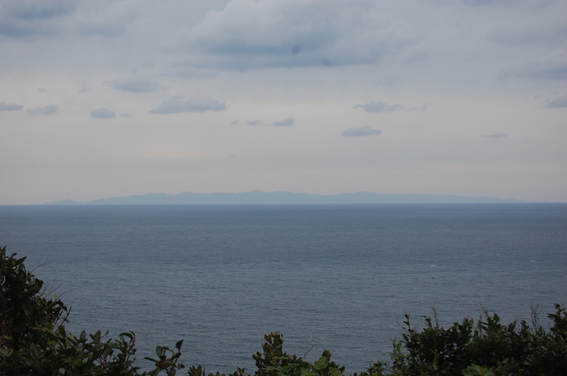 入口から60メートルと看板がありますが、かなりの高低差があって、トレーニングになるほど!やっと上ると、なんと正面に、はっきりと対馬が見え、灯台の明かりもわかりました。