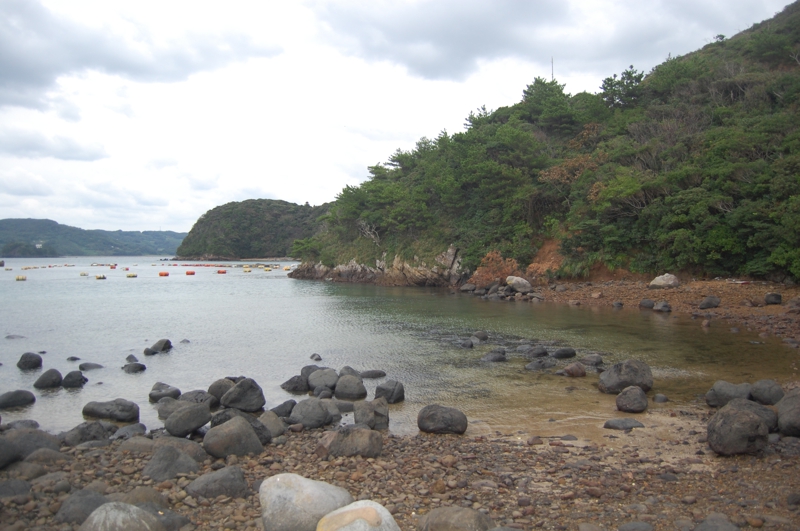 この写真の右側奥には、小さな砂浜があって、昔はサクラ貝も見つけたことがありました。久しぶりに下りていくことにしました。さっきの砲台跡の方まで戻り、畦道を通って、海岸線まで下りていくと、