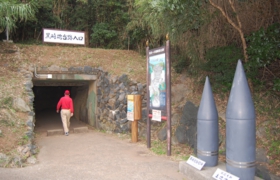 これは、砲台の一番上部です。今ではここしか見ることができませんが、この小さな島に、東洋一の砲台を造っていたという事実は、今から想像もできないほど凄いことだと感じます。実際にこの砲台は使われることなく終戦。解体作業も大変だったようです。この砲台跡の横にひっそりと存在していたのが、最初に紹介した「猿岩」です。この場所に、一般の人々が入れるようになったのは終戦後。それまでは「猿岩」に気づかなかったそうです。