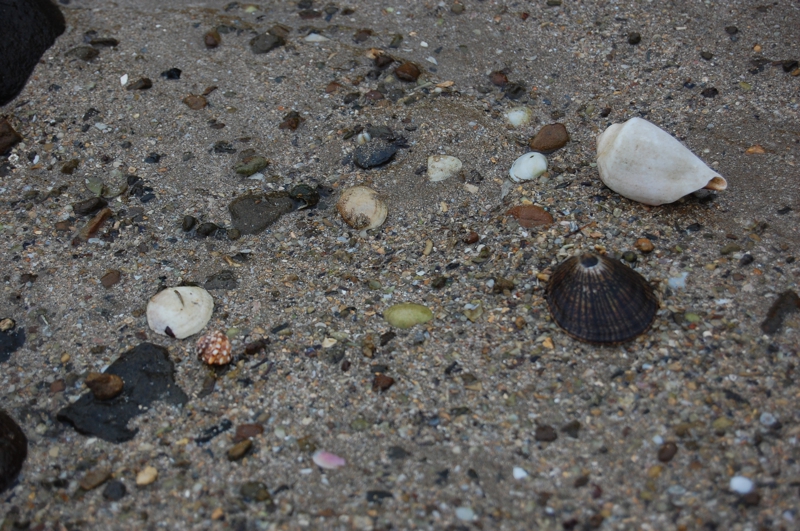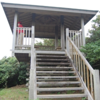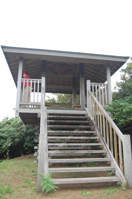 お目当てのサクラ貝はほんの少しのかけらしかありませんでした。後で、みやげもの屋の「お猿のかごや」の方に聞くと、砂浜の先の方には、水晶があるそうです。次は、ぜひ見つけようと思いました。お猿のかごやでちょっと休憩して、今度は、展望所へ。
