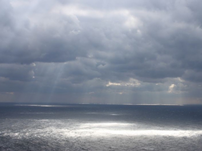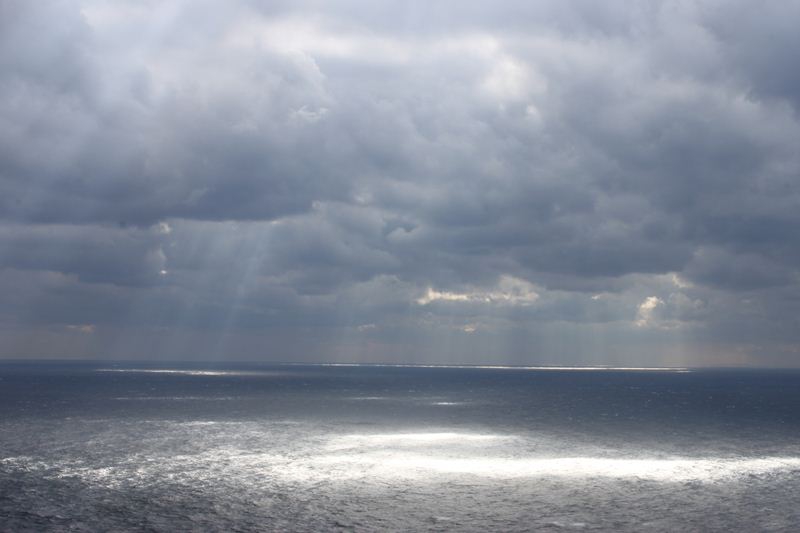 それよりも、曇り空の中、水平線が広がる海原に光が射していてとても幻想的で素敵でした。