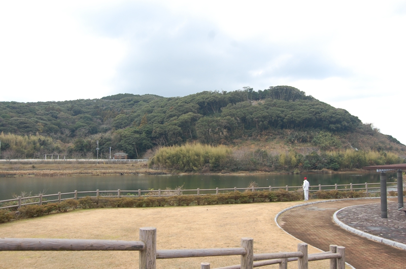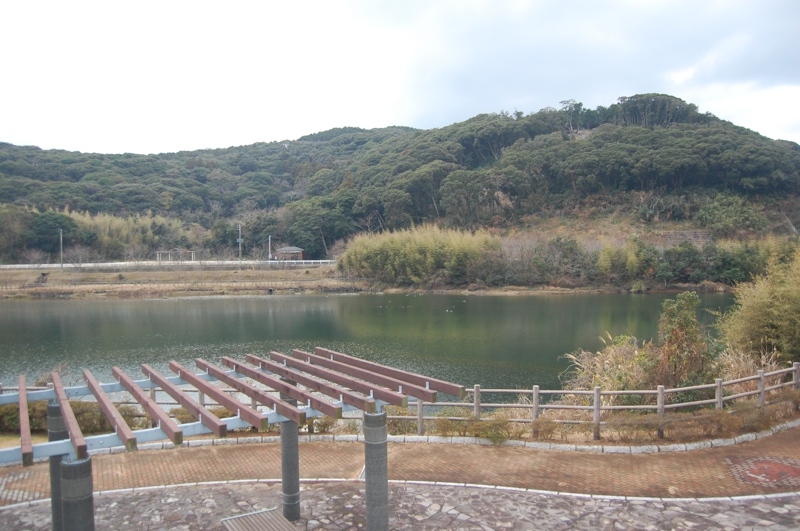 ダム湖にはカモの群れも気持ちよさそうに泳いでいました。ダムの周りを周囲できるように整備してあります。ちょうど、ベビーカーを押した親子4人が、お散歩していました。春には芝生の緑色がきれいでしょうね!