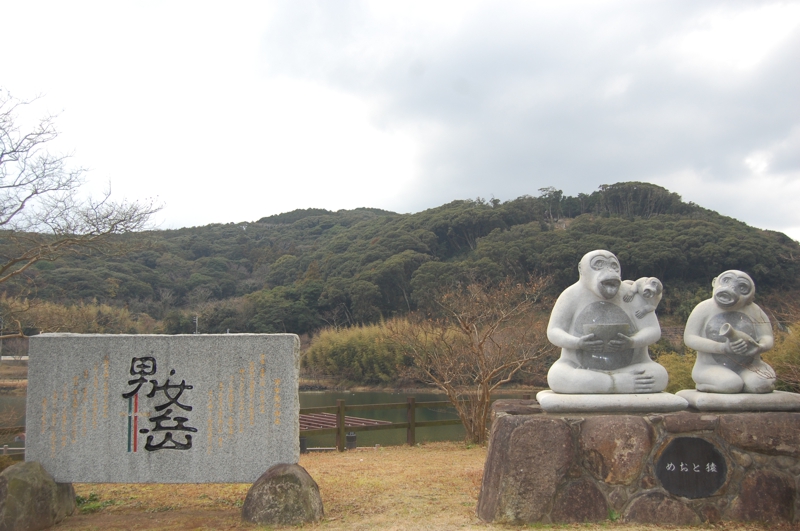 夫婦仲良くお酒を飲んでいる石猿の名前が、「めおと猿」と書いてあるように、正解は、