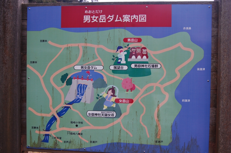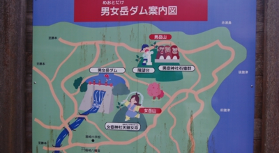 左手に、男女岳ダム公園の看板が見えたら、左折。