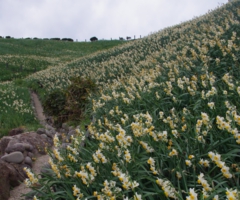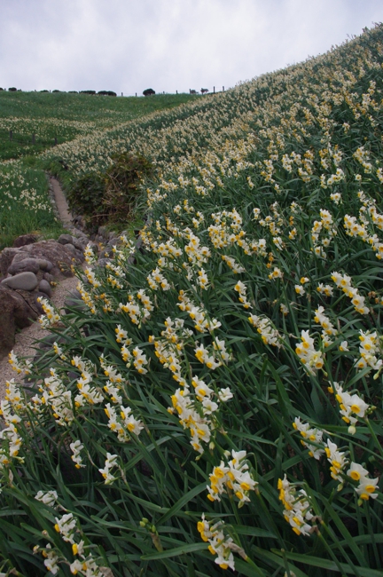 雨降り前のちょっと温かな日、長崎市南部に位置する野母崎町へ…。野母崎総合運動公園内「水仙の里公園」で開催されていたのは「のもざき水仙まつり」です。