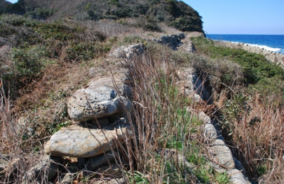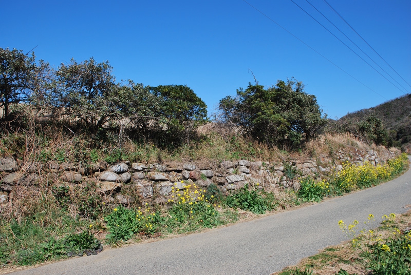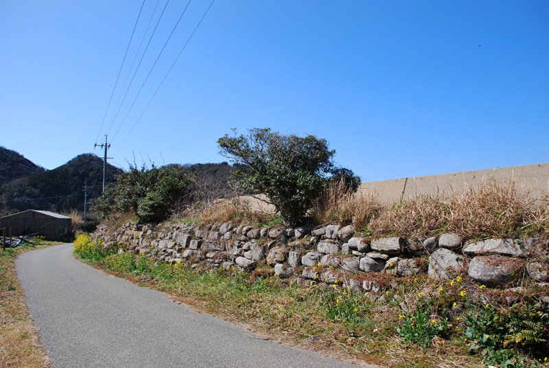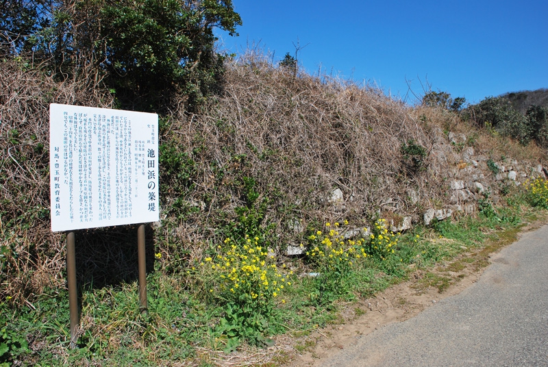 気持ちよく晴れた小春日和の中、豊玉町の廻(まわり)地区にある池田の浜を訪れました。今回の島の細道は、江戸時代に土木の名匠として知られていた増田定七が築き、今も残る築堤を紹介します。