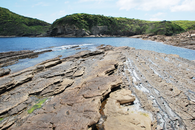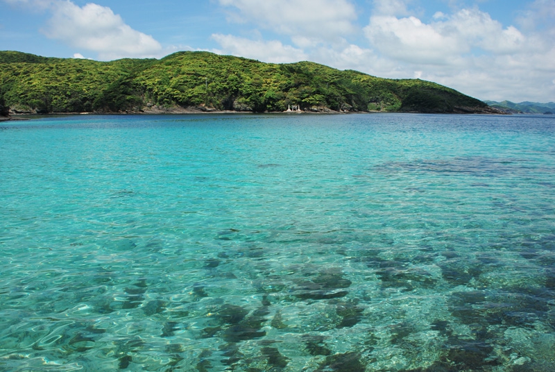 対馬東海岸の中央部にある赤島(あかしま)は、エメラルドグリーンの海と砂岩による奇岩郡が見どころの島です。赤島は昭和54年に赤島大橋が完成するまで、対馬本島との行き来は船でのみ可能だった島で、豊かな自然が色濃く残っています。赤島大橋周辺の海底は砂地のため、太陽光線が当るとエメラルドグリーンの海が楽しめることから、対馬で最も美しい海といわれており、ダイビングやシーカヤックのポイントとしても良く知られています。