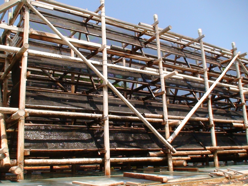 赤島バス停側に巨大なヤグラが建っています。これは元、ホテルのシェフでもある私の友人、福岡の橋本さんが、天日干しの塩を作っている場所で、赤島のミネラル豊富で潮の流れが速い海が塩作りに向いていると十数年前からやっています。本来、塩は釜炊きで作るのですが、橋本さんは太陽と風だけで海水の塩分濃度を濃くして、海水に豊富に含まれるミネラルを損なわず塩に加工しています。その味は、しょっぱさの中に甘みを感じ、とてもまろやか。素材の味を引き立たせるのでプロの料理人のファンも多いそうです。