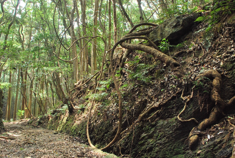 登山道とはいっても、旧軍道なので道幅も広く歩きやすいですが、立ち止まると薮蚊の攻撃を受けます。虫除け対策をしっかり行って歩きましょう。