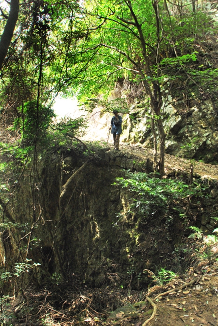 登山道は切り立った崖沿いに続きます。(落ちたら這い上がるのに苦労しそう)