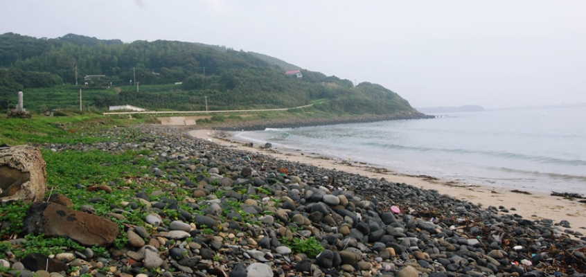 夏の朝、筒城浜キャンプ場から歩いて10分。薪を集めるための散歩で初めて訪れた塩津の浜で、壱岐の歴史を学ぶことができました。