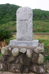 毎年夏のキャンプをしている石田町筒城浜の近くに、1つの供養塔を見つけました。この供養塔に関係する壱岐の島が世界的に有名になった事件をご存知ですか?ヒントはイルカです。