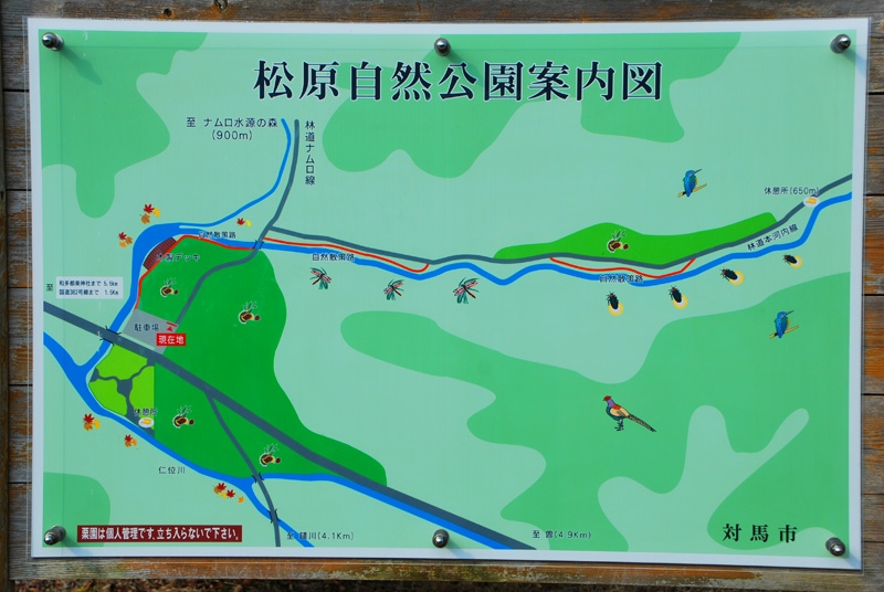 ここ、豊玉町の仁位(にい)にある松原自然公園は、小川沿いに平坦な散策路が続いており、一番奥の休憩所まで650mと距離も短いため、小さなお子様連れでの自然散策にピッタリです。