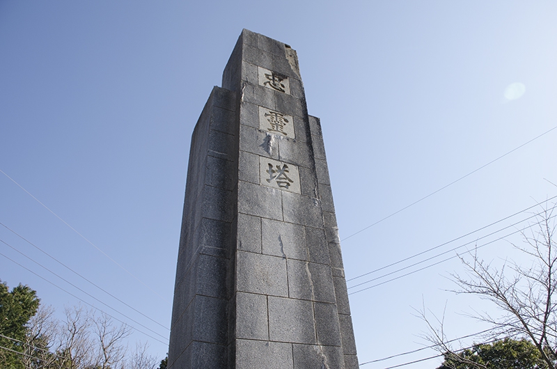 公園の一角には、三つの石碑が並んでいます。一番大きな石碑は「忠霊塔」とあります。説明看板など無いため詳しくはわかりませんが、このような軍用墓地は平時の軍人を埋葬する目的で作られ、後に戦争で命を落とした戦没者も祀られるようになったようです。立派な石碑ですが、残念ながらところどころ欠けたり、敷石が割れていました。