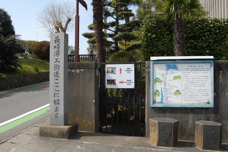 「長崎浦上街道ここに始まる」の碑がありました。二十六聖人たちが、真冬に歩いた道でもあります。今回は、こちらの道とは反対の、長崎駅方面へと向かいます。