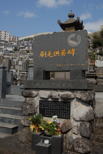 本堂横にはなにやら「刷毛供養塔」という、比較的新しめの碑がありました。表具内装組合と刻まれているから、きっと表具・内装屋さんが使用している刷毛(はけ)を供養しつつ、商売繁盛もお願いしているのではないかと想像しました。