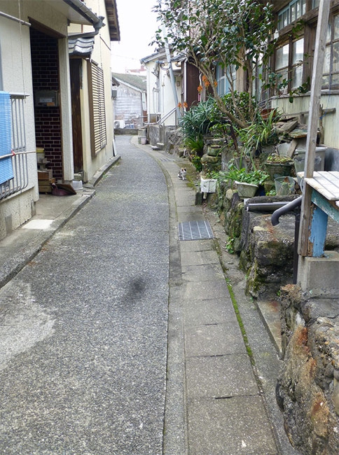 五島に限らず古くからある港町の、埋め立てなどしていない道はほとんどが狭くて入り組んでますね。不思議・・・。