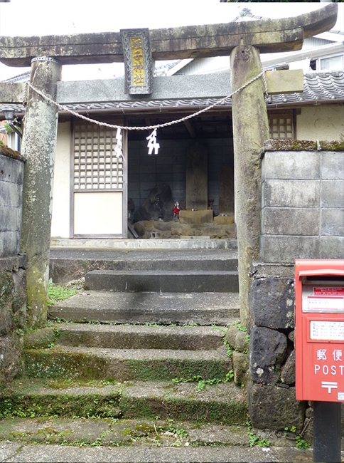 突き当りを右に折れると小さな祠。蛭子神社と書かれています。実はこの地域は、昔々鹿児島からの漂流者などが住み着いた地域だと言われています(いました、かな?)。恵比寿様というのは七福神で有名ですが、漁師町ではクジラや漂流物のことを言っていたらしいですよ。クジラはもちろん、漂流物も恵みを下さるありがたい神様です。