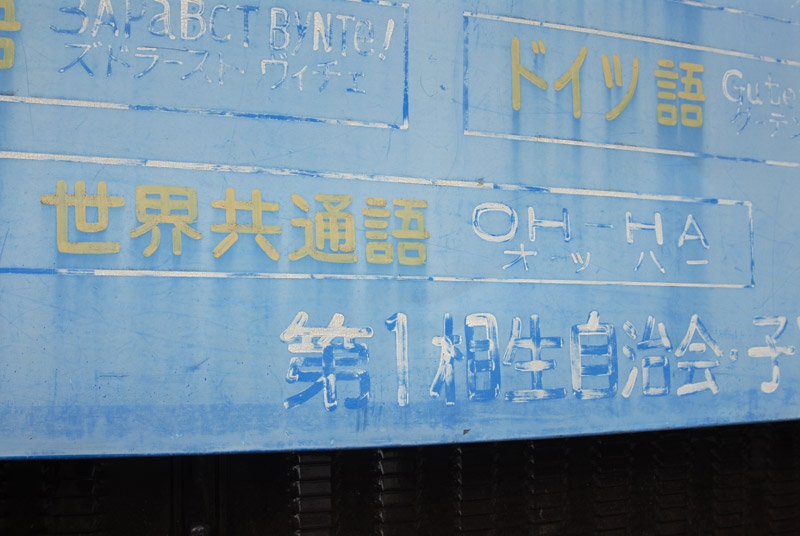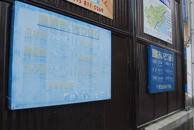 あ、あいさつ看板が!! 国際あいさつ通りは続いていたんだ。