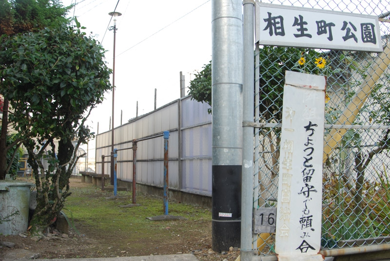 数分もたたないうちに、プチ公園が見えてきた。面白看板フェチな私の心をくすぐる標語入り看板に視線が釘付け。「隣組 ちょっと留守でも 頼み合い」。心にしみる良い標語ですね。