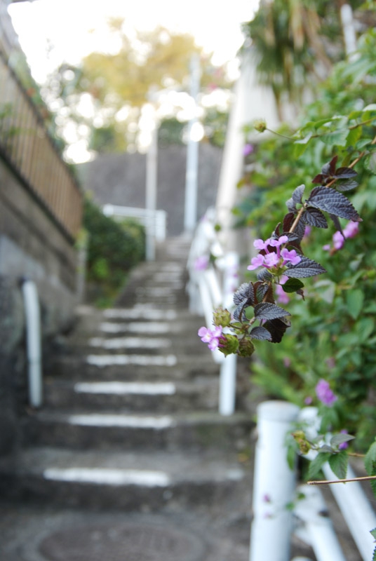 長崎の坂って、坂道というより急な石段が続くイメージが強いような気がする。途中、キレイな花が咲いていて、少し癒やされました。