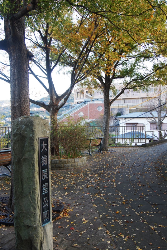 石段を約10分で上りきりました。上りきったところには大浦展望公園が。撮影時は少し肌寒く感じる晩秋。イチョウの葉っぱが絨毯みたいで美しかった!